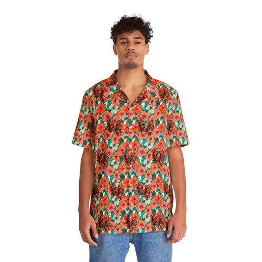 Hawaiian Tiki Mask Shirt - Orange