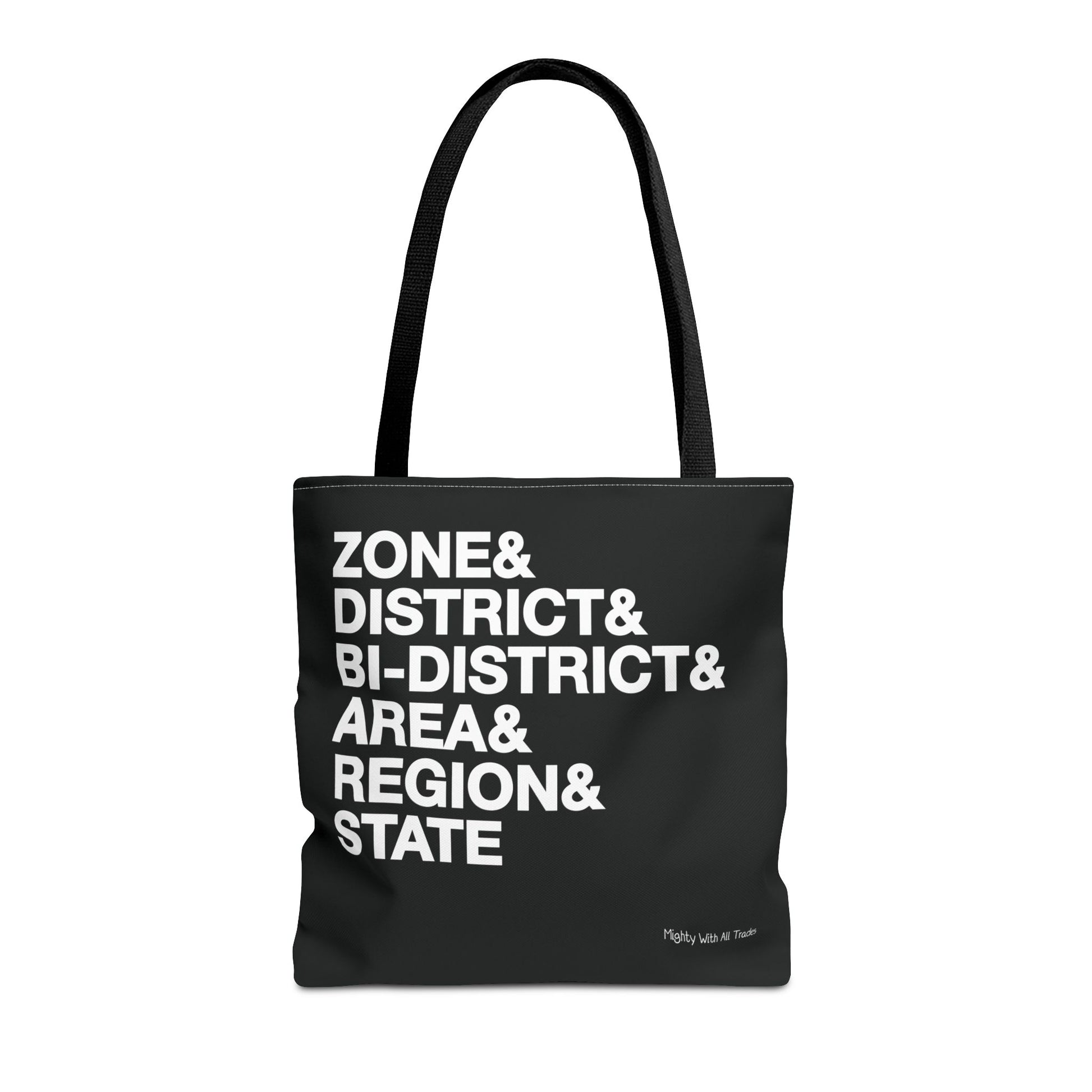 There are many levels in the competition known as One Act Play. Each is more challenging than the one before until 8 remain in each conference. Inspired by everyone's inappropriate black and white card game is this large weekender tote bag. Perfect for hauling all of your travling needs as you begin your competition journey.